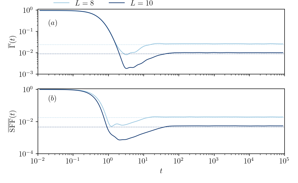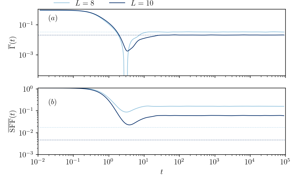 3 We checked that the ramp persists, introducing a finite value of $\beta$, as shown in the plot attached (not shown in the manuscript). At low enough temperature the model is expected to have a spin glass transition where ETH arguments are not predicted to hold.